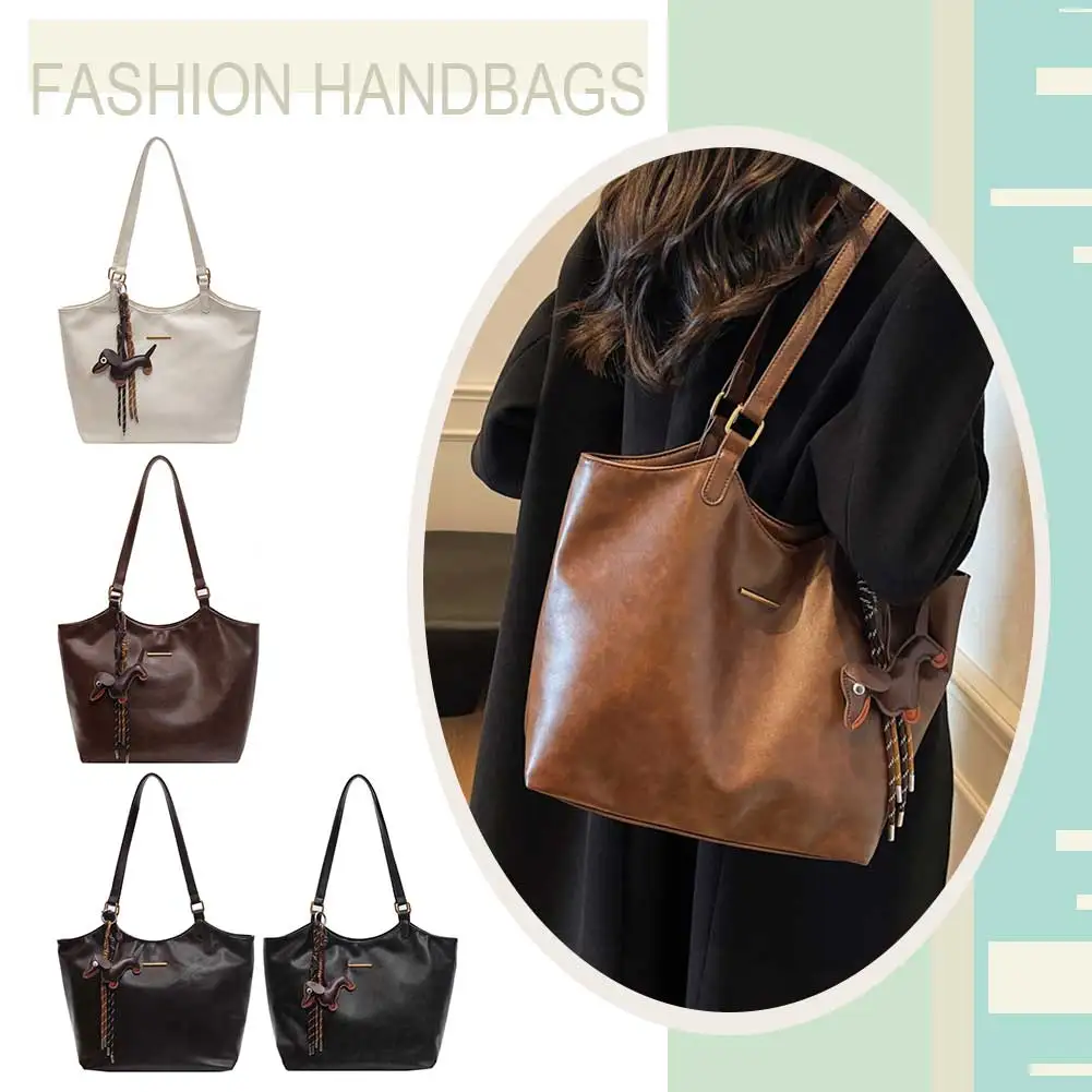 Women Vintage Shoulder Bag PU Leather Retro Tote Handbag Large Capacity Fashion Underarm Bag Female Travel Work Bag Features: 1.Premium PU Material: Crafted from high-quality PU fabric, this vintage shoulder bag is not only soft and comfortable to the touch but also and incredibly easy to maintain, ensuring longevity and effortless care. 2.Spacious Design: With dimensions that readily accommodate essentials such as your smartphone, keys, wallet, and lipstick, this retro tote handbag is ingeniously structured for carrying all your items and accessories with ease. 3.Organized Convenience: The casual tote bag features practical pocket storage, making it easy to keep your belongings organized and at hand, whether you're running errands or out for an evening. 4.Versatile Style: Offered in a chic solid color, this slouchy tote purse seamlessly transitions between a shoulder bag and a handbag, complementing a wide array of fashion choices and effortlessly elevating your style. 5.Ideal Gift Choice: for shopping sprees, festive gatherings, or adding a touch of elegance to your travel and street photography outfits, this fashion underarm bag is an excellent gift for mothers, girlfriends, or wives, celebrating both style and functionality.
